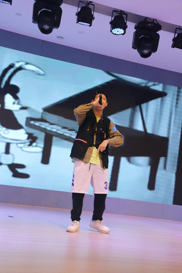 第四個節目是9年級Patrick帶來的Rap《Taking Freestyle》,這是一首原創作品,節奏分明的律動和獨具個性的歌詞被表演者嫻熟的說唱技巧演繹,贏得了全場的熱烈鼓掌。