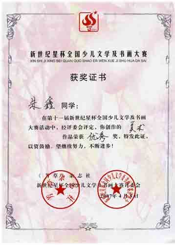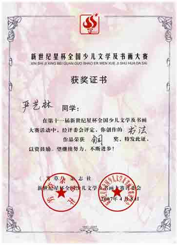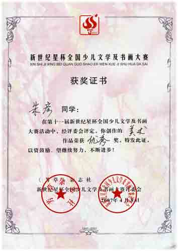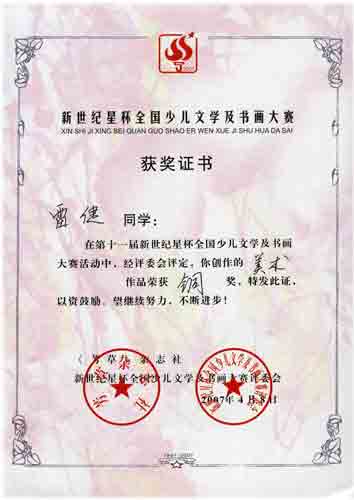十一屆新世紀星杯全國少兒文學及書畫大賽獲獎名單