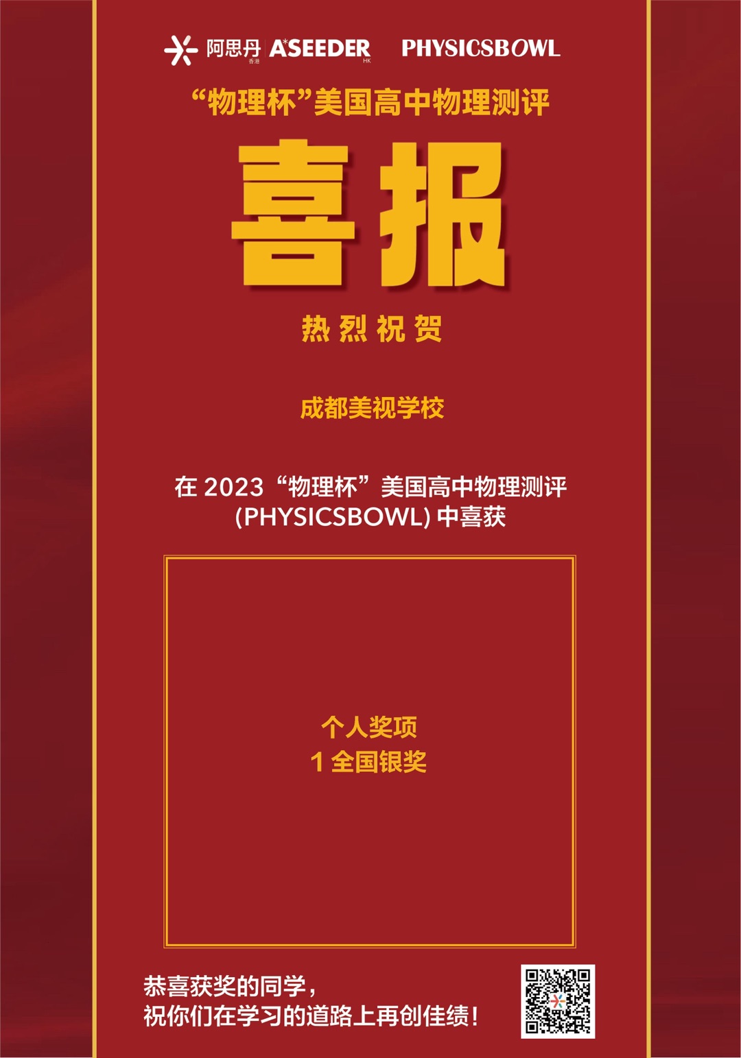 喜報:融合部同學在2023年“物理杯”美國高中物理測評 (Physicsbowl)中獲得全國銀獎